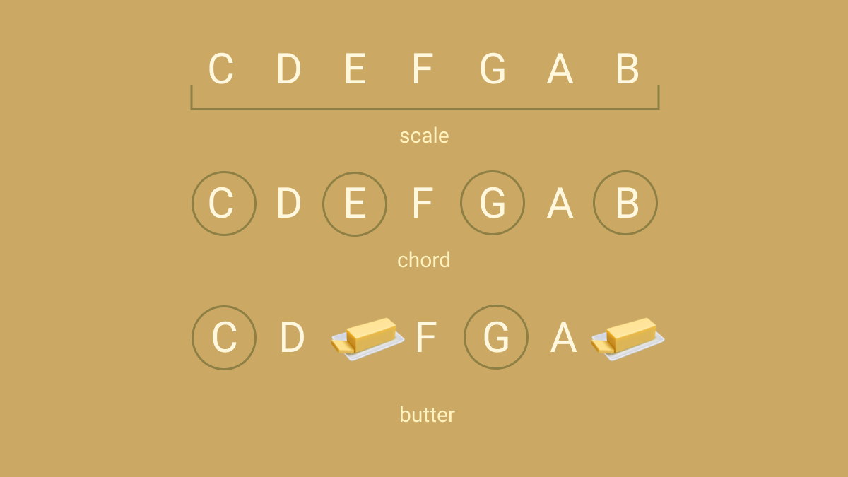 Usually, in music, you have 7-note scales that allow you to build different chords on a given tonality.