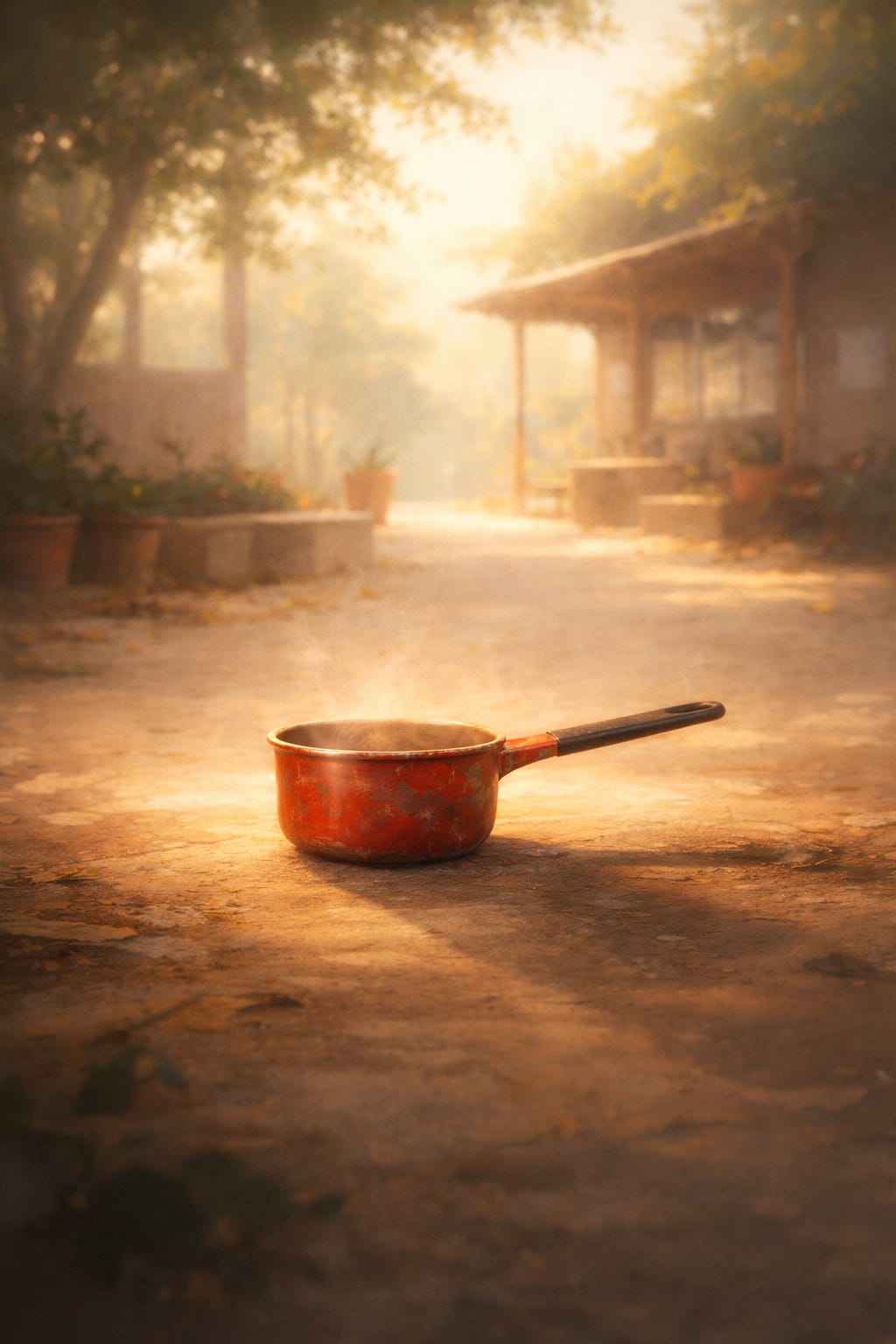 Her kitchen is now missing both the red pot and my grandma. The former, even if broken, still serves a purpose in a children’s mud kitchen. The latter, even if absent, still carries a presence within the hearts of those who love her.